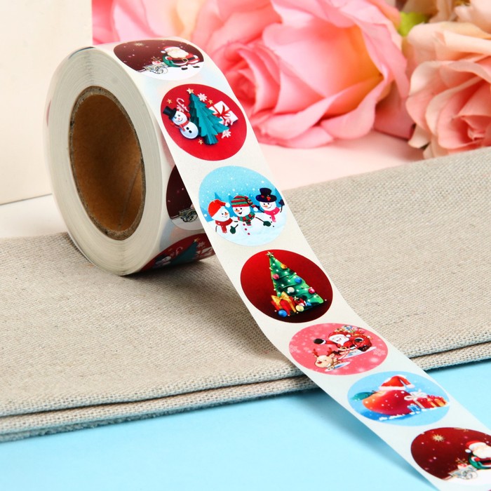 Наклейки в рулоне "Снеговики", 500 шт, 2,5 х 2,5 см