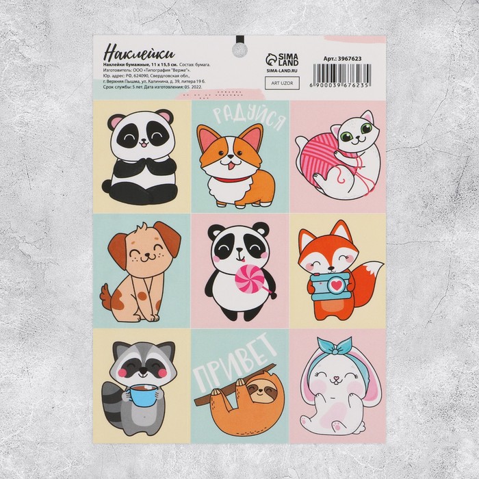 Наклейки детские бумажные «Милые друзья» , 11 х 15.5 см