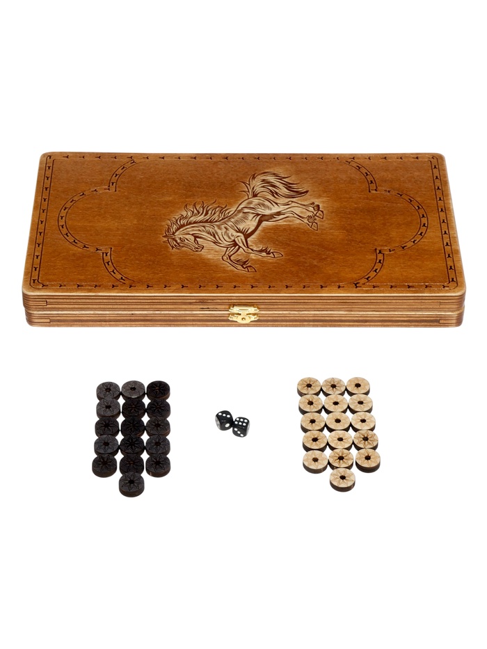 Классика для спокойных вечеров. Деревянные нарды с гравировкой «Конь» — это возможность провести время за настольной игрой и создать атмосферу вдумчивого, неспешного досуга. Натуральное дерево и лаконичный сюжет из животного мира делают набор практичным и визуально выразительным аксессуаром для дома.