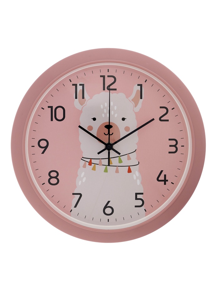 Круглые настенные часы диаметром 29 см с очаровательным изображением альпаки на нежно-розовом фоне дарят детской комнате атмосферу нежности и мягкости. Кварцевый механизм с плавным ходом стрелок и арабскими цифрами превращает отсчёт времени в спокойное приключение, помогая ребёнку осваивать ритм дня без суеты.