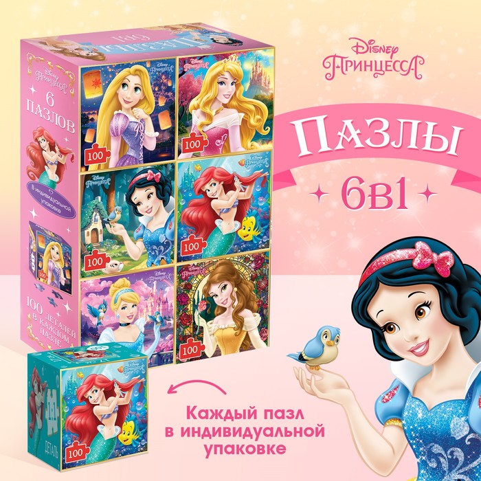 Набор пазлов 6 в 1 «Принцессы», по 100 деталей в каждом пазле - товар, который Вы можете приобрести в нашем интернет-магазине. Заказ могут оформить как юридические, так и физические лица. Бесплатная доставка по Астане, также, отправляем по РК.