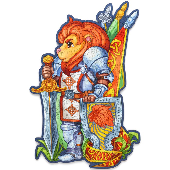 Пазл деревянный «Лев-рыцарь», размер L — 25 × 35 см, 110 деталей