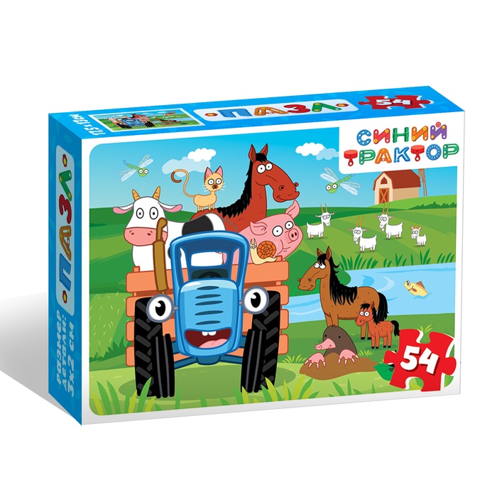 Сборка пазла — это не только увлекательное занятие, но и эффективный способ развить у ребёнка усидчивость и пространственное мышление. Яркие иллюстрации с персонажами мультфильма «Синий трактор» делают процесс ещё более интересным, а удобный размер элементов идеально подходит для маленьких ручек.