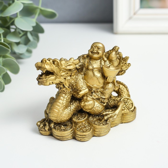 Нэцкэ фигурка «Хотей верхом на драконе», полистоун, под бронзу, 6×9.5×7 см - товар, который Вы можете приобрести в нашем интернет-магазине. Заказ могут оформить как юридические, так и физические лица. Бесплатная доставка по Астане, также, отправляем по РК.