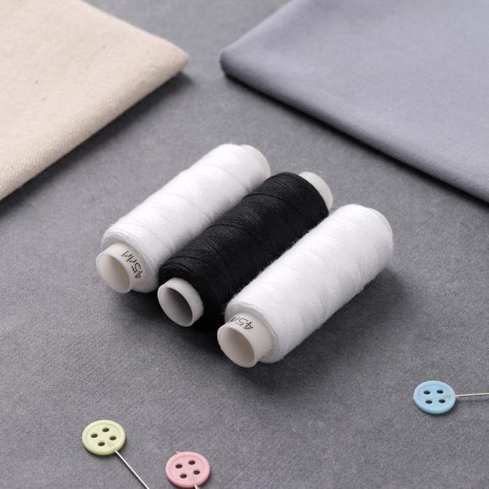 Часто возникает необходимость отремонтировать или подшить одежду. В такой ситуации вас выручит набор «Домино» с чёрными и белыми нитками.