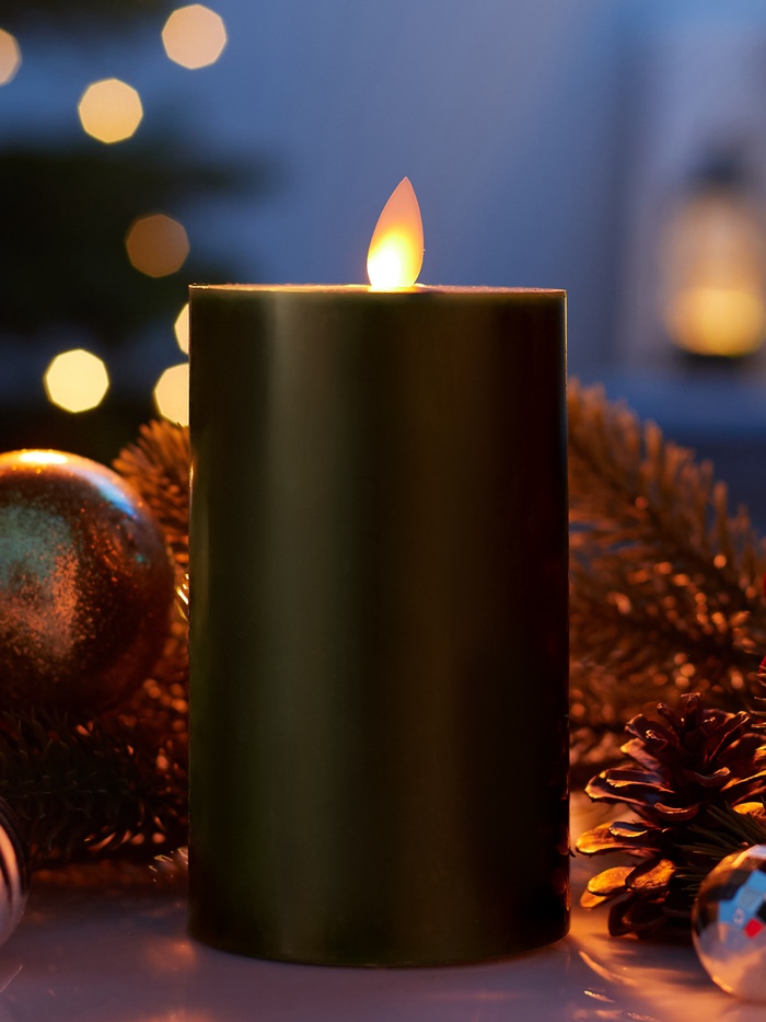 Свеча оснащена светодиодом с тёплым белым свечением, которое работает в постоянном режиме, наполняя помещение мягким и приятным светом. Питание от трёх батареек AAA (в комплект не входят) обеспечивает мобильность и удобство использования без необходимости подключения к электросети.