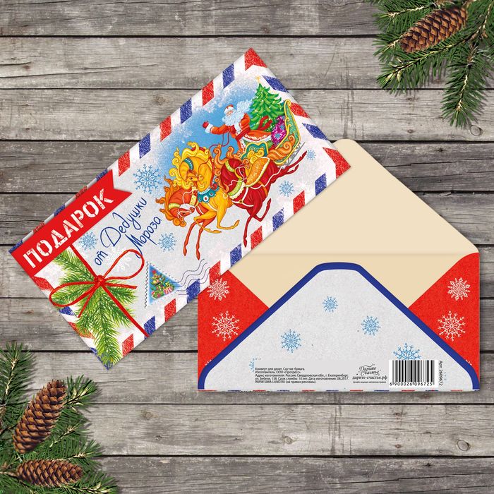 Новый год — любимый праздник всех детей и взрослых, потому что можно загадать самые заветные желания, и они обязательно исполнятся. Такой конверт посодействует этому волшебству! Положите туда что-нибудь очень хорошее и порадуйте своих близких! Изделие имеет оригинальный дизайн, который непременно поднимет настроение его счастливому обладателю.