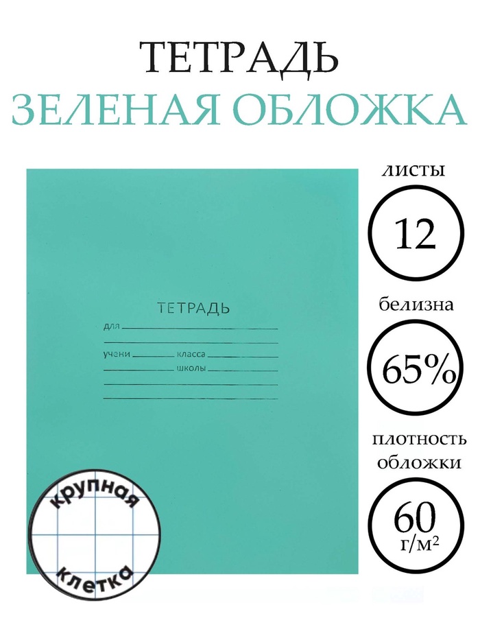 Тетрадь с зеленой обложкой предназначена для дошкольников и учащихся начальных, средних и старших классов. Листы – серые.
