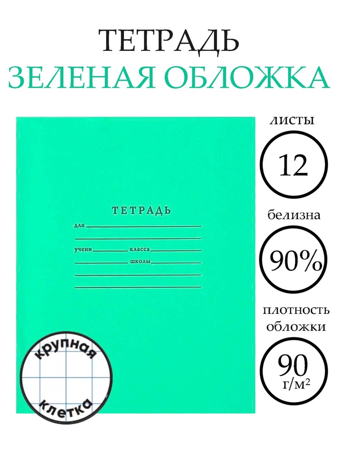 Тетрадь с зеленой обложкой предназначена для дошкольников и учащихся начальных, средних и старших классов. Листы – белые.