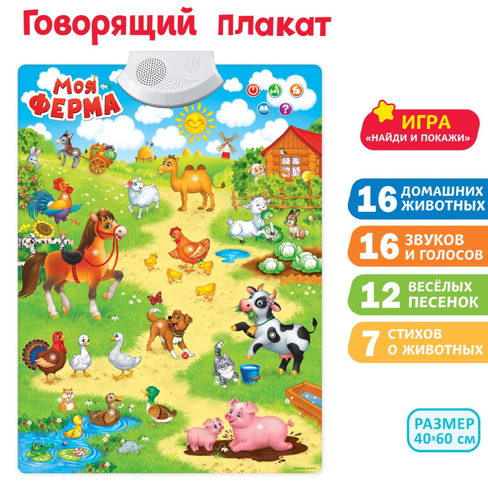 Кто живёт на ферме? Ребёнок узнает это с говорящим плакатом Zabiaka.