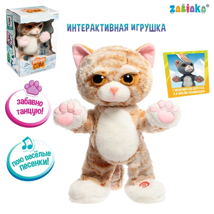 Интерактивная игрушка «Котёнок Сэм» станет хорошим подарком ребёнку на Новый год или любой другой праздник! Яркий дизайн надолго привлечёт внимание малыша. У зверька мягкая и приятная на ощупь шёрстка. Котёнок поёт песенки и задорно танцует.