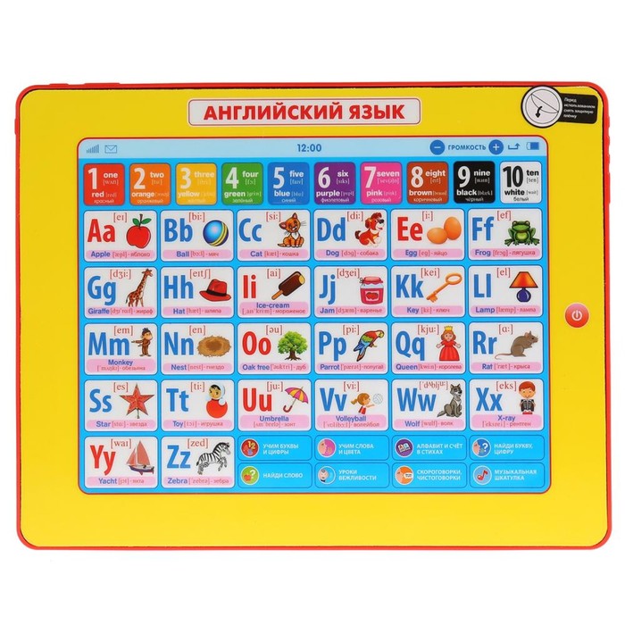 Сенсорный планшет «Английский язык», 45 стихов и песен, уроки вежливости, 8 режимов
