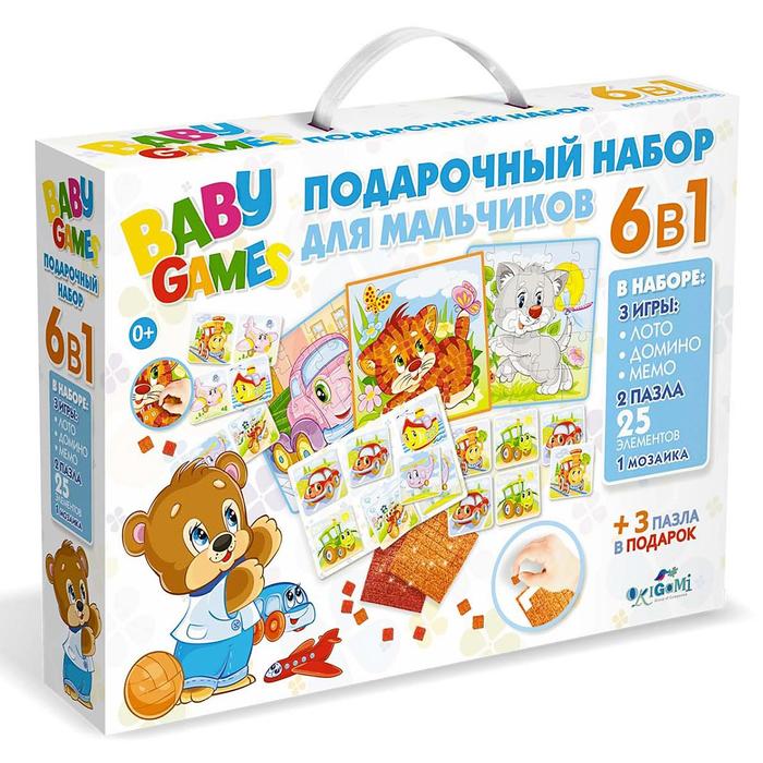 Подарочный набор 6в1 «Лото, домино, мемо, пазл 25 элементов», для мальчиков