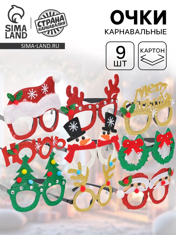Карнавальные очки «Новогодние», набор 9 штук - товар, который Вы можете приобрести в нашем интернет-магазине. Заказ могут оформить как юридические, так и физические лица. Бесплатная доставка по Астане, также, отправляем по РК.