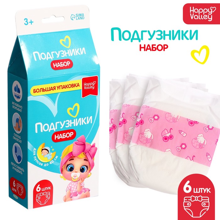 Для увлекательных игр в дочки-матери малышке необходимы разнообразные аксессуары. С подгузниками девочка будет заботиться о пупсике как о настоящем младенце. Малышка наденет их на игрушечного карапуза и отправится на прогулку. Полезное изделие поможет заменить горшок и сохранит в чистоте детские вещи.
