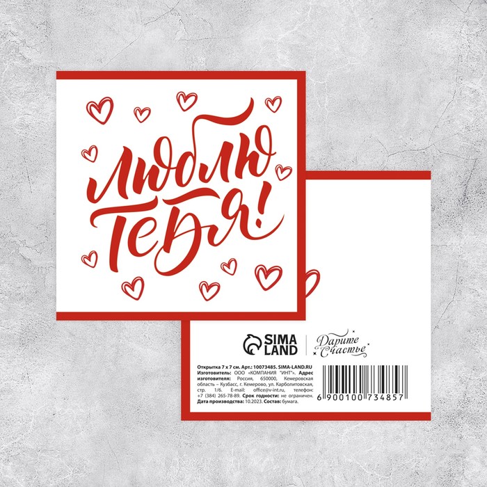 Мини-открытка «Люблю тебя!», шрифт, 7 х 7 см - товар, который Вы можете приобрести в нашем интернет-магазине. Заказ могут оформить как юридические, так и физические лица. Бесплатная доставка по Астане, также, отправляем по РК.