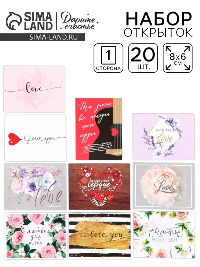 Набор мини-открыток 8×6 см, 20 шт. - товар, который Вы можете приобрести в нашем интернет-магазине. Заказ могут оформить как юридические, так и физические лица. Бесплатная доставка по Астане, также, отправляем по РК.