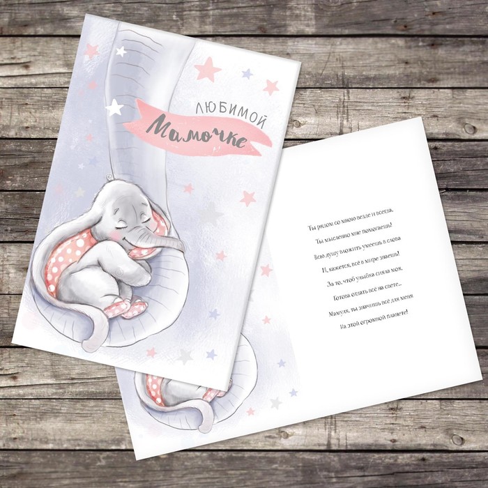 Открытка «Любимой мамочке», слоненок, 12 × 18 см - товар, который Вы можете приобрести в нашем интернет-магазине. Заказ могут оформить как юридические, так и физические лица. Бесплатная доставка по Астане, также, отправляем по РК.