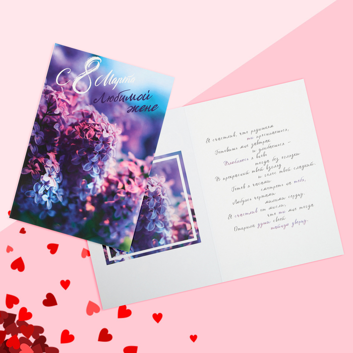 Открытка «Любимой жене с 8 Марта!», сирень, 12 х 18 см - товар, который Вы можете приобрести в нашем интернет-магазине. Заказ могут оформить как юридические, так и физические лица. Бесплатная доставка по Астане, также, отправляем по РК.