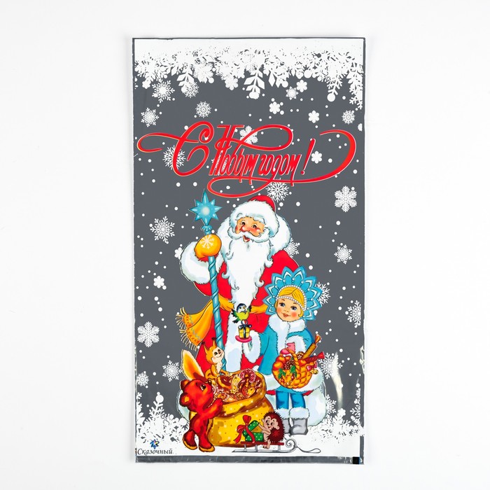 Новогодний подарочный пакет с ярким, красочным рисунком создаст праздничное настроение.