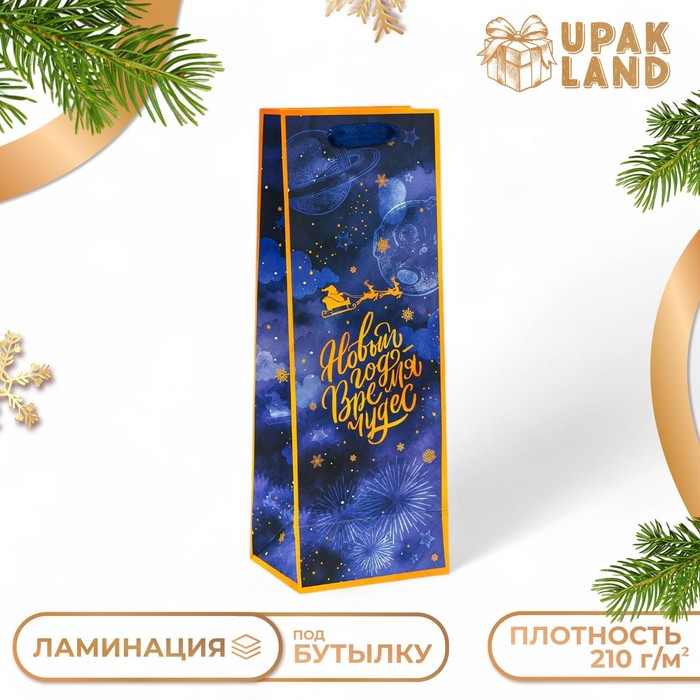 Подарочный пакет новогодний — идеальный выбор для упаковки бутылки.