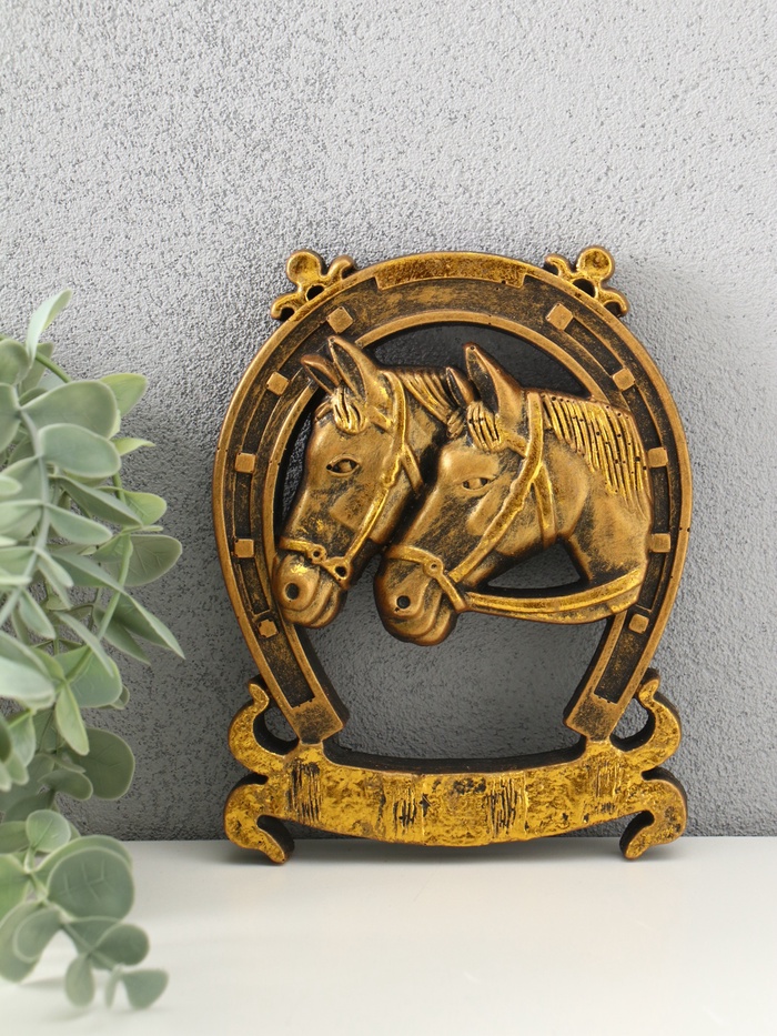Этот золотой талисман с лошадьми приносит в дом тепло и ощущение удачи. Компактный декор занимает мало места, но становится важной деталью, наполняющей интерьер особым смыслом. Он напоминает о поддержке и верности, которые дарят эти благородные животные.