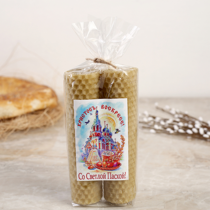 Набор свечей из вощины медовой 13 см, 2 шт "Со Светлой Пасхой" МИКС