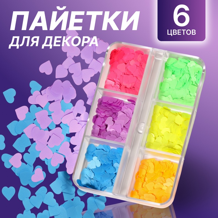 Набор пайеток для декора ногтей «Сердечки NEON» Queen Fair (QF)