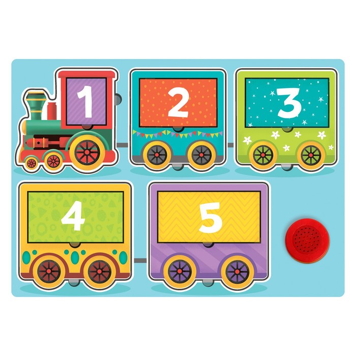 Музыкальный пазл «Весёлый паровозик» научит малыша считать от одного до пяти, а также преподнесёт ему маленький сюрприз. Поднимите окошечки с цифрами и посмотрите, каких пассажиров везёт паровозик. Встроенный музыкальный чип сделает игру веселее и интереснее.