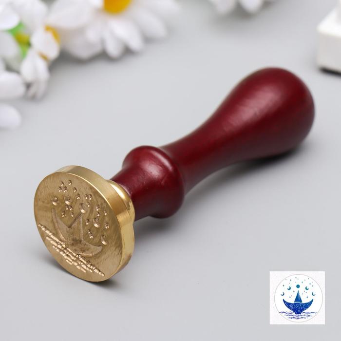 Печать для сургуча с деревянной ручкой "Парусник на хвосте у кита" 9х3х3 см