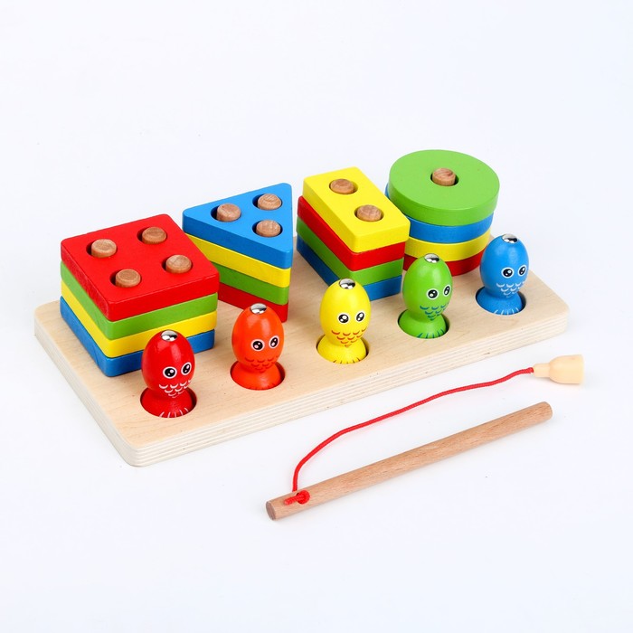 Собирая пирамидку, ребёнок учится различать цвета и формы, развивает логическое мышление и мелкую моторику. Магнитная рыбалка тренирует ловкость, глазомер и координацию. Игрушка знакомит с геометрическими фигурами и помогает освоить навыки сортировки. Это отличный способ провести время с пользой и подготовиться к школе.