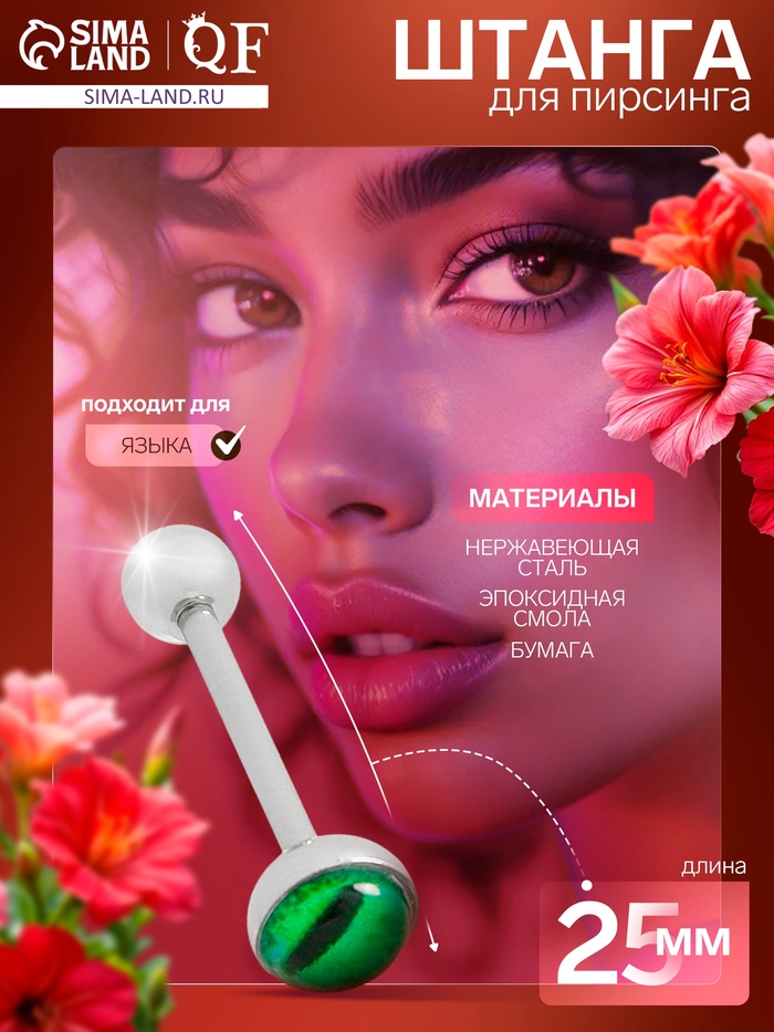 Откройте для себя уникальный аксессуар, который добавит яркий акцент в ваш образ — пирсинг для языка с глазиком. Длина 2.5 см и стильный зелёный цвет в сочетании с серебристой фурнитурой делают его идеальным выбором для тех, кто хочет выделиться из толпы и подчеркнуть свою индивидуальность.