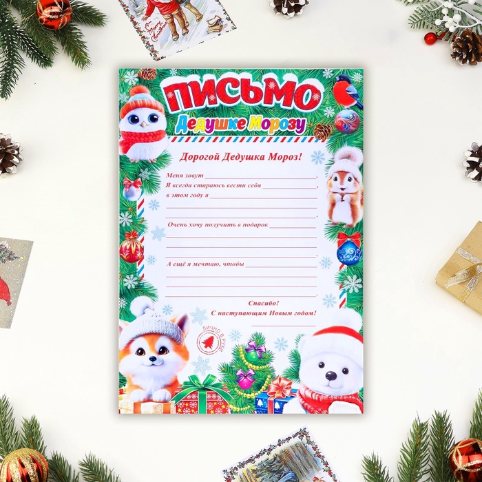 Новый год. Письмо Деду Морозу лиса, медведь, бумага, 21,5х30 см - товар, который Вы можете приобрести в нашем интернет-магазине. Заказ могут оформить как юридические, так и физические лица. Бесплатная доставка по Астане, также, отправляем по РК.