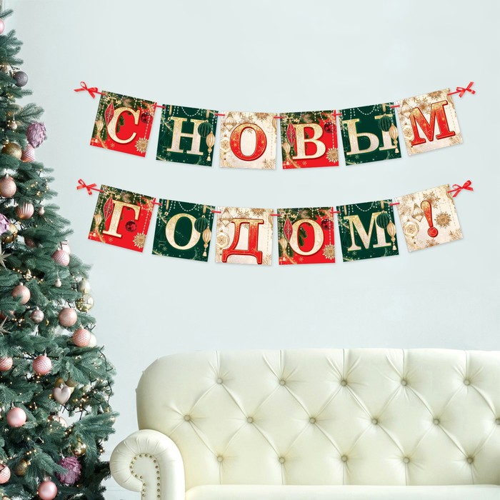 Растяжка - гирлянда "С Новым годом" - красивый и стильный атрибут праздничного оформления. Бумажная гирлянда, выполненная из плотного картона (200 грамм), будет отлично смотреться на кадрах в фотозоне или других локациях. Картонная гирлянда выполнена в современном стиле и подходит под различную тематику оформления праздника. Вывеска регулируется по длине и может использоваться в один или два ряда.