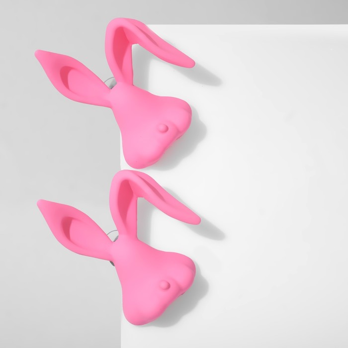 Серьги пластик «Зайка», цвет бело-коричневый в серебре