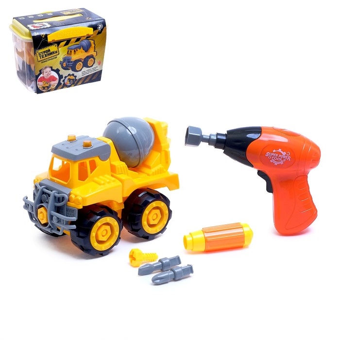 С необычным конструктором мальчишка самостоятельно соберёт строительную машину, научится ей управлять и возведёт собственный город мечты. Для этого в комплект входит отвёртка и шуруповёрт. Выберете подходящий инструмент и соединяйте детали друг с другом, следуя указаниям инструкции. Готовую «Бетономешалку» украсьте наклейками и приступайте к строительству мегаполиса.