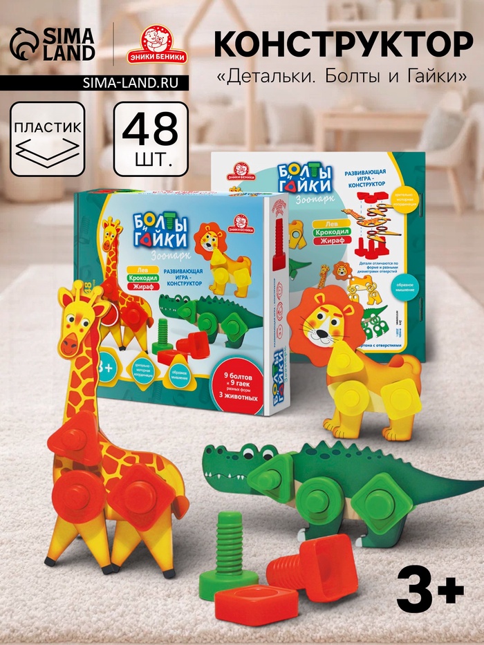 Что развивает игра: мелкую моторику, пространственное и образное мышление, усидчивость и внимательность. Детский конструктор с винтовым соединением помогает не просто собрать фигурку, а почувствовать результат собственных усилий. «Зоопарк» станет удачным выбором для знакомства с миром деталей, болтов и гаек — понятным, безопасным и по-настоящему увлекательным.