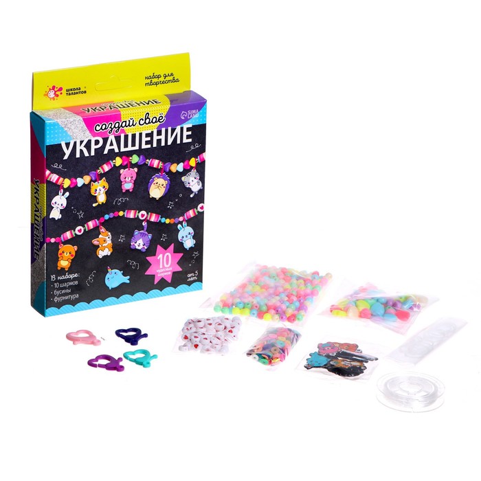 В наборе: 10 шармов, бусины, фурнитура.