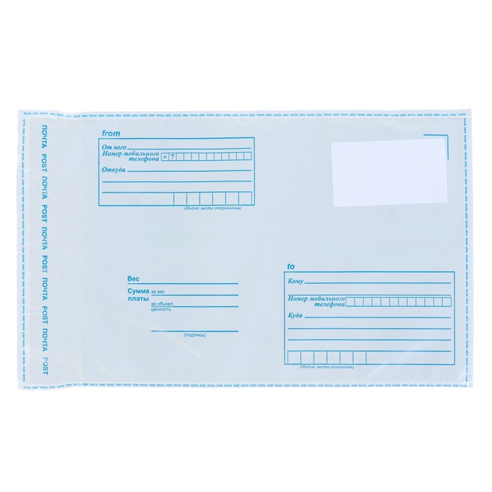 С почтовым пакетом Ваше почтовое отправление упакованное в пластиковый пакет никогда не промокнет и не испачкается. Это наиболее удобный способ аккуратно доставить Вашу посылку.
