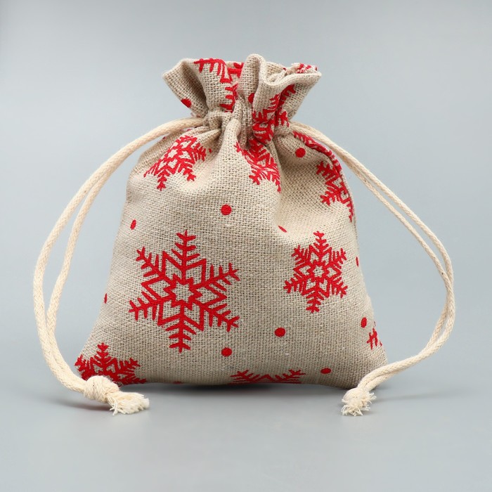 Мешочек подарочный холща «Новогодние ожидания», снежинки, холща, 10 х 12 см +/- 1.5 см