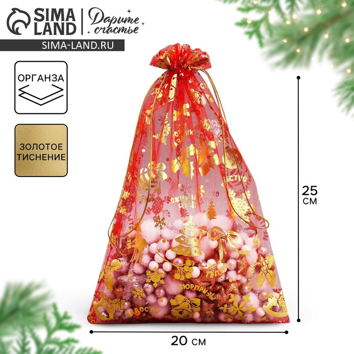 Мешочек подарочный органза «Волшебного Нового года», 10 х 12 см +/- 1.5 см