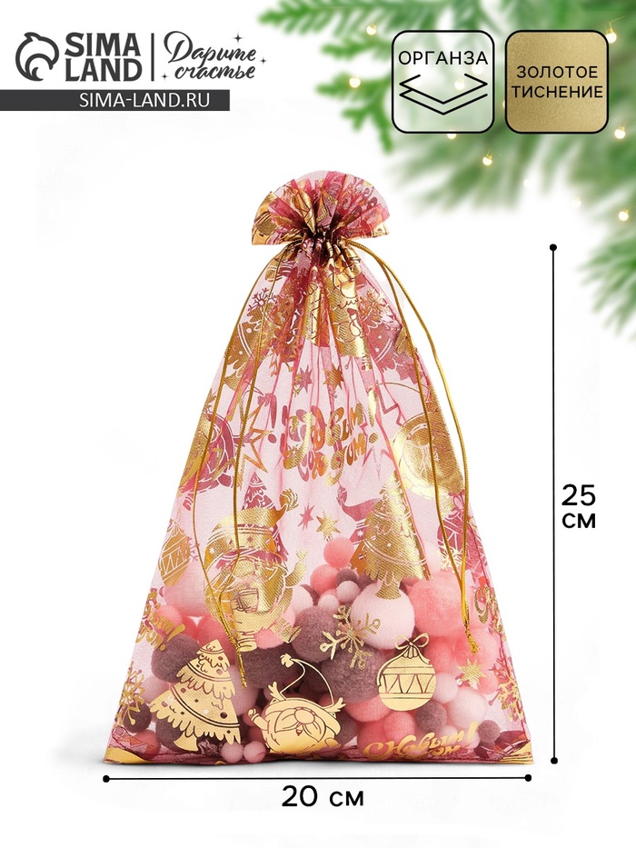 Мешочек подарочный органза «С Новым годом!», 20×30 см - товар, который Вы можете приобрести в нашем интернет-магазине. Заказ могут оформить как юридические, так и физические лица. Бесплатная доставка по Астане, также, отправляем по РК.