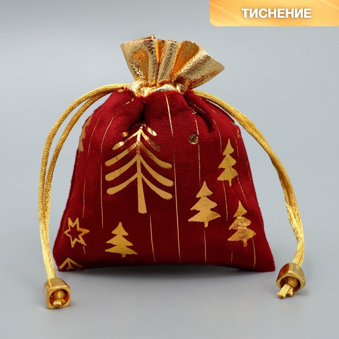 Мешочек подарочный плюш «Сказка с тобой», ёлки, тиснение, 10 х 12 см +/- 1.5 см