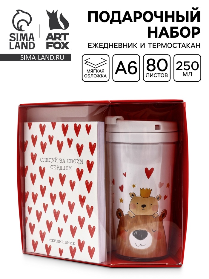 Подарочный набор: Ежедневник А6, 80 л., термостакан 250 мл «Следуй за сердцем» - товар, который Вы можете приобрести в нашем интернет-магазине. Заказ могут оформить как юридические, так и физические лица. Бесплатная доставка по Астане, также, отправляем по РК.
