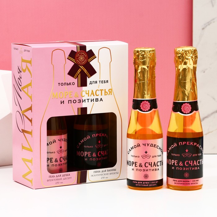 Подарочный набор косметики «Море счастья!»: гель для душа и пена для ванны шампанское, 2×250 мл, Чистое счастье - товар, который Вы можете приобрести в нашем интернет-магазине. Заказ могут оформить как юридические, так и физические лица. Бесплатная доставка по Астане, также, отправляем по РК.