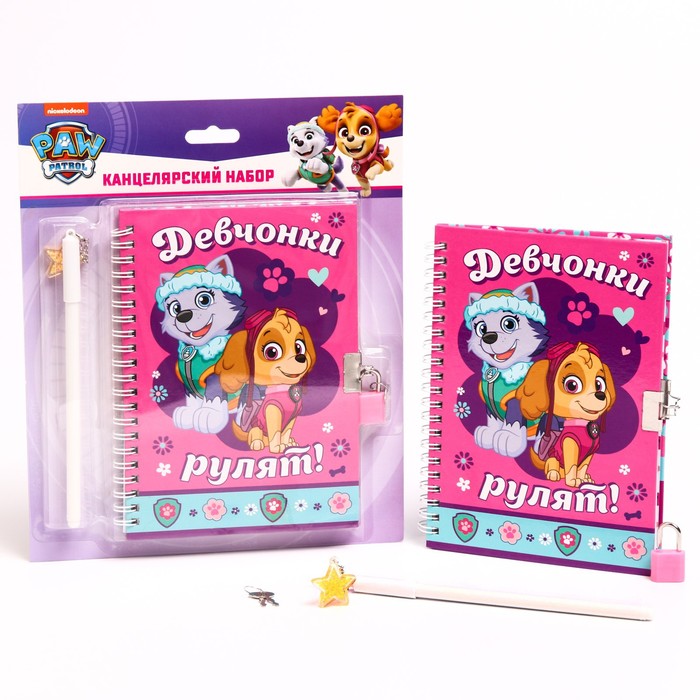 Подарочный набор: записная книжка "Скай и Эверест" на замочке и ручка, Paw Patrol