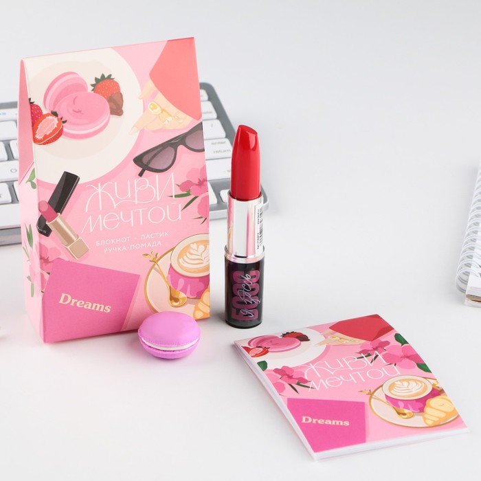 Подарочный набор: блокнот, ручка-фигурная и ластик «Живи мечтой»