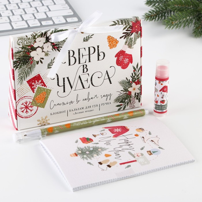 | Составляющие набора | Бальзам для губ, Блокнот, Ручка |