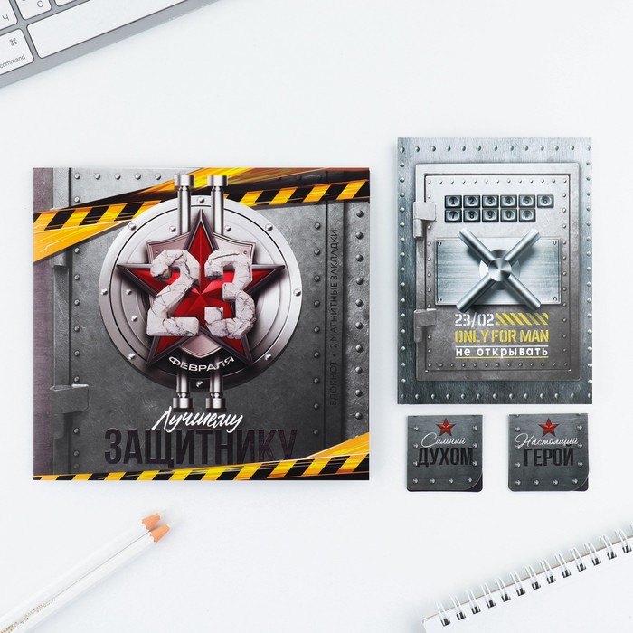 Подарочный набор «Лучшему защитнику. 23 февраля», блокнот и магнитные закладки 2 шт. - товар, который Вы можете приобрести в нашем интернет-магазине. Заказ могут оформить как юридические, так и физические лица. Бесплатная доставка по Астане, также, отправляем по РК.