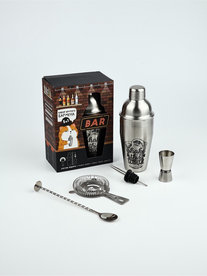 Набор для приготовления коктейлей «Бармен, повтори» — идеальный выбор для любителей качественных напитков. В комплект входят 5 предметов: барная ложка, шейкер, стрейнер, джиггер, гейзер.